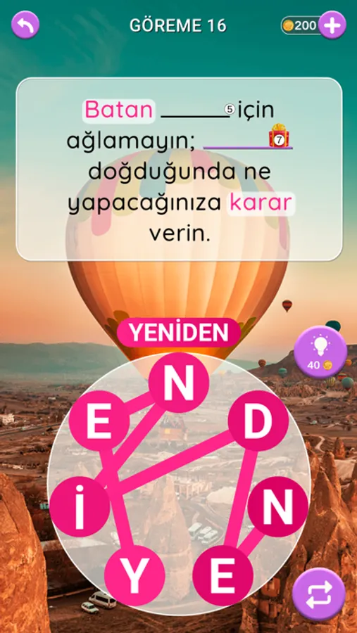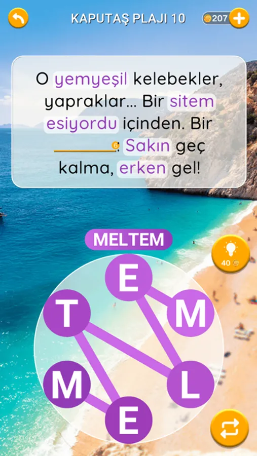 - Cümle içerisindeki boşluk bırakılan kelimeleri doldurmak için harf tabağındaki harfleri sırayla kaydırarak yan yana dizin.