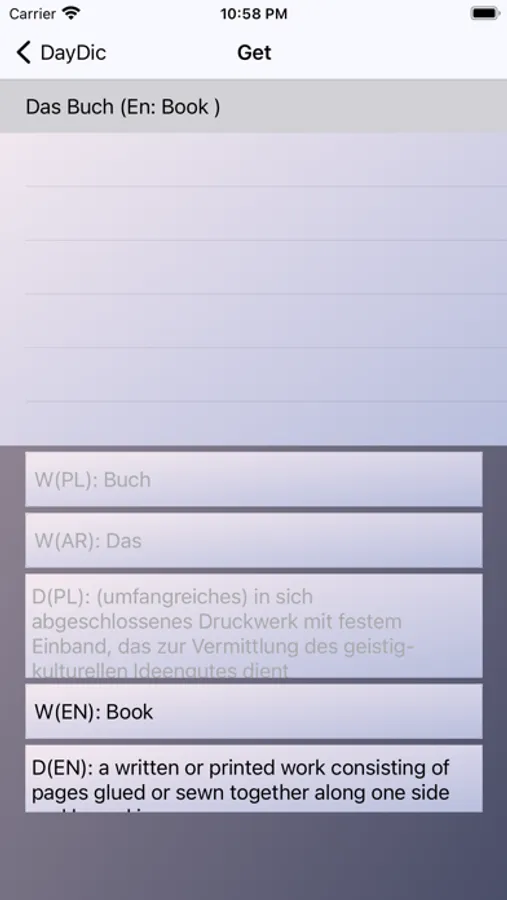 DayDic is an app for creating own dictionaries. It can handle the articles and definitions in one databank in your device, so you can use it offline. Simple interface makes the ease of the interact possible for you.
