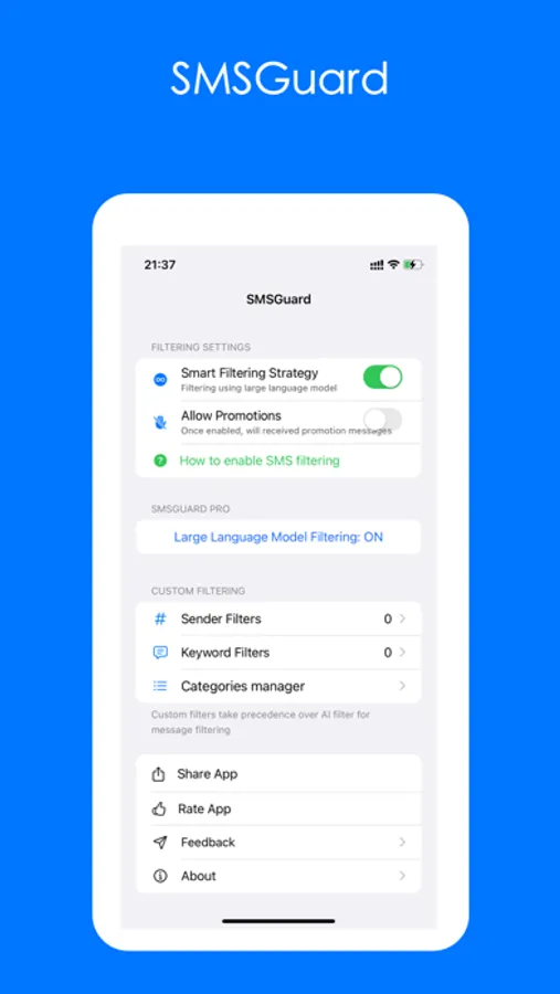 SMSGuard is a message filter power by the latest Large Language Model, which is simple, secure and customizable.