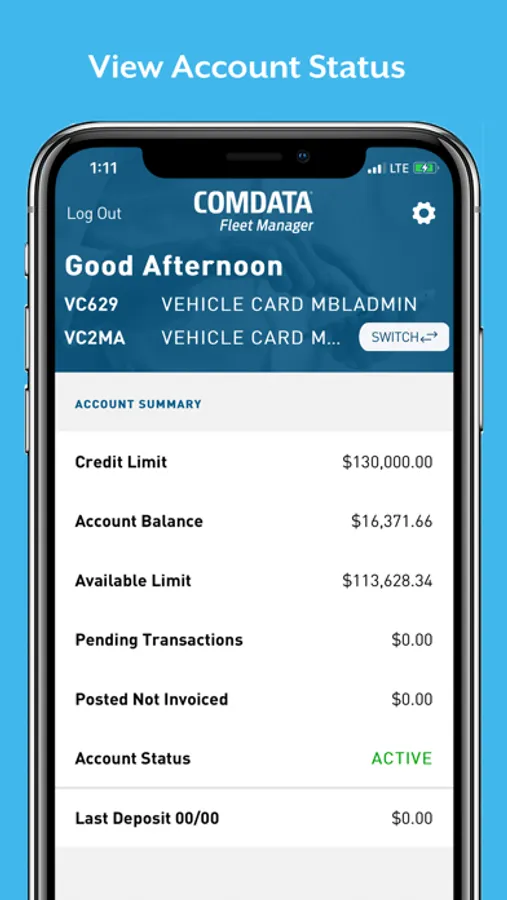 With the Comdata Fleet Manager mobile app, Fleets can manage their account, cards, drivers, vehicles, and more from the conveniance of their mobile device - anytime, anywhere. View transactions, troubleshoot decline reasons, issue one-time product overrides, and much more.