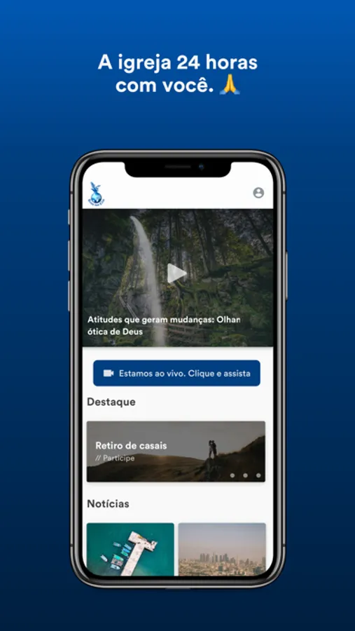 - Conecte-se com a igreja através dos grupos de interesse, receba conteúdo direcionado e obtenha sua carteirinha exclusiva.