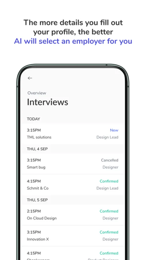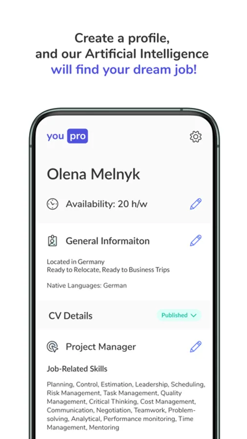 AI-algorithms built into our system will suggest positions that fit you the best. Employers will be able to see you as a relevant match for their projects and will invite you for interviews. Don’t lose your chance to become a part of another great inspiring project!