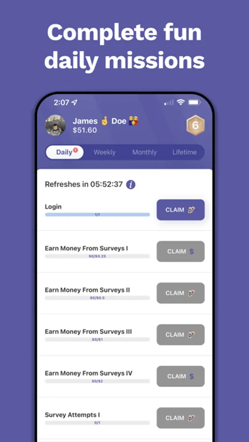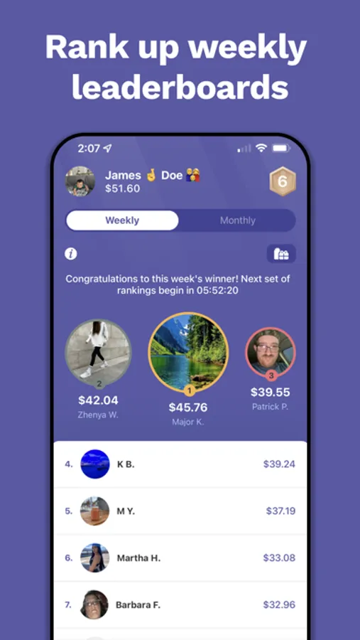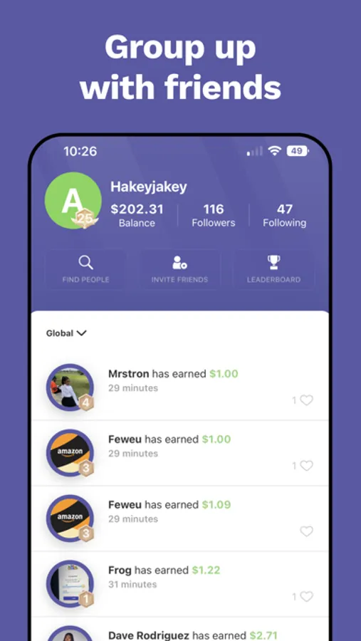2. Boost your earnings even more with daily questions and missions, team up with your friends to cash out even faster, and compete against other users for cash prizes!