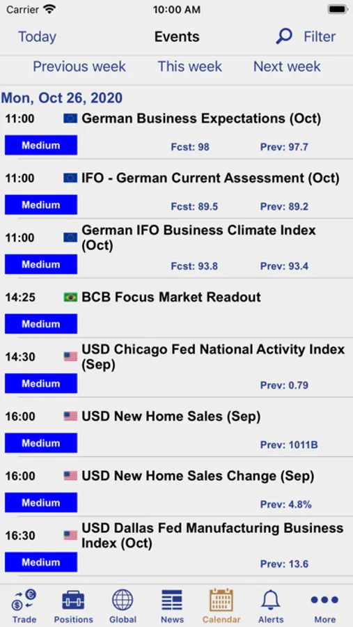 • Global Calendar with key events and indicators
