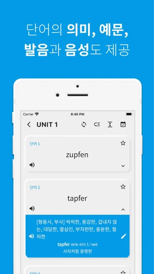 걱정하지마세요. 독일어 단어는 여러분께 독일어 단어 발음을 음성으로 지원하고 있습니다.