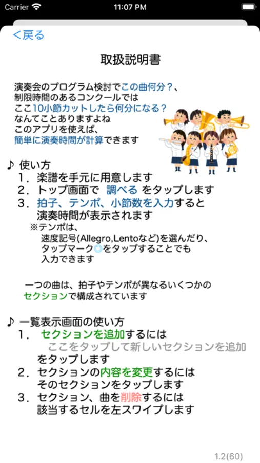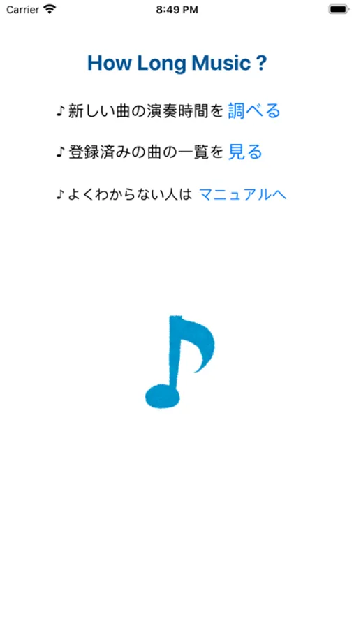 このアプリを使えば、楽譜を見ながら拍子、テンポ、小節数を入力するだけで簡単に演奏時間が計算できます。