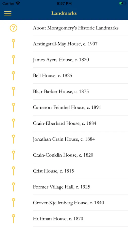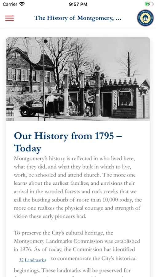 The City of Montgomery, Ohio, was founded in 1795 by settlers from Montgomery, New York. The City has retained many historical buildings, designating 32 of them as local landmarks. This app provides audio presentations, text, and pictures of each of these unique properties. Audio provided by landmark owners, local preservationists, and city officials. Excellent app for those interested in Montgomery, history, architecture, and preservation.
