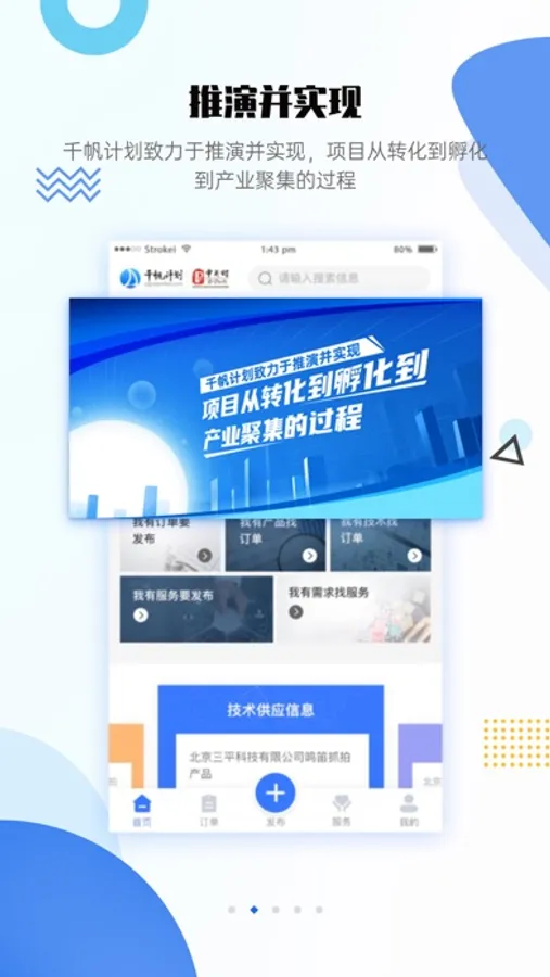 中关村管委会支持科创企业发展“千帆计划”,以“订单+服务”为核心,集成大企业、技术转移机构、孵化服务机构及其他科技服务机构各类资源,推出百亿订单,十亿服务包,千名导师,采取“大手拉小手”的方式,为科技型初创企业提供专业服务,促进大中小企业融通发展,支持科创企业健康成长。