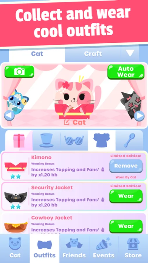 Connect with your friends and show off your Greedy Cats. Share photos of your cats dressed as a little sailor, blooming sunflower, or even a frosted doughnut. There are so many unique outfits to choose from!