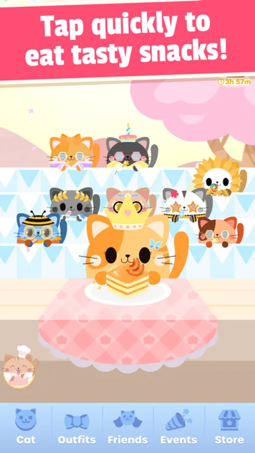 • Tap quickly to eat snacks to beat stages and earn trophies!
