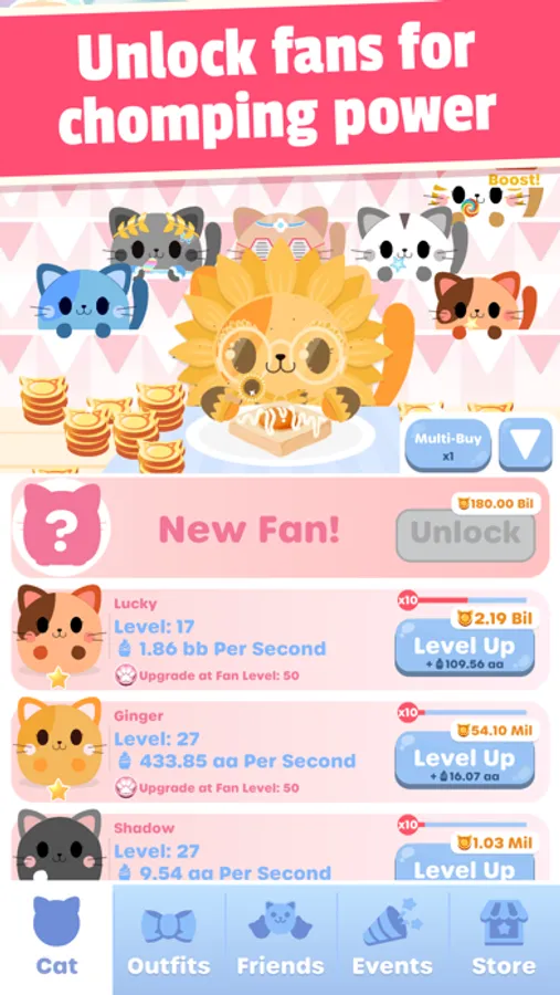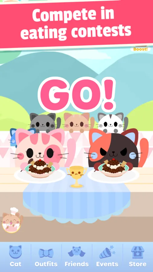 These Greedy Cats have an unstoppable desire to chomp as much food as possible! Unlock and upgrade all the Greedy Cats and collect cute outfits. Compete against the greediest cats in head-to-head eat-offs, win trophies, earn rewards, and begin your path to munching stardom!