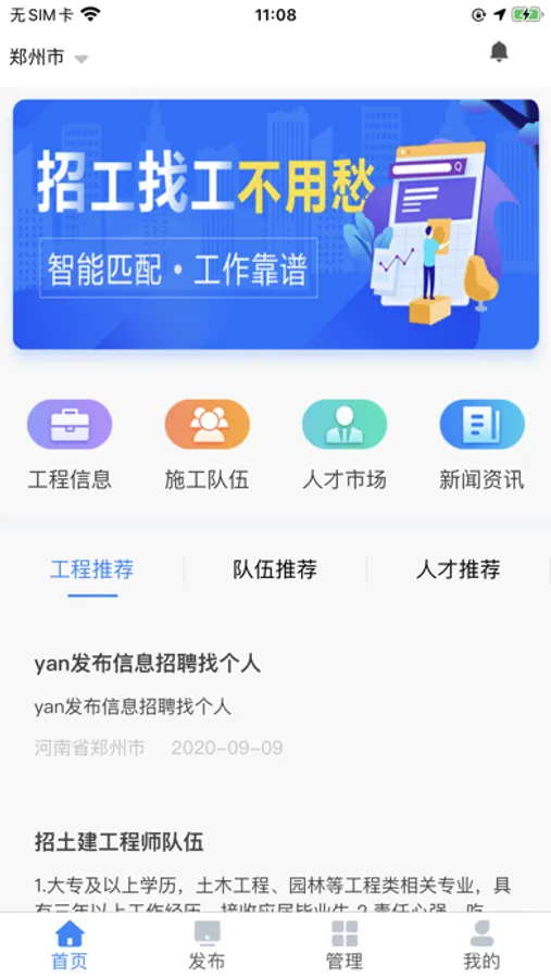 劳大哥专注建筑业招工找活及团队考勤和工资管理。海量工程信息、施工队伍、人才信息免费查询发布,更有一键投递功能,方便施工队和个人找活,为建筑企业寻找优秀的建筑人才和施工队伍。针对小规模施工队提供方便快捷的考勤和工资发放管理功能。