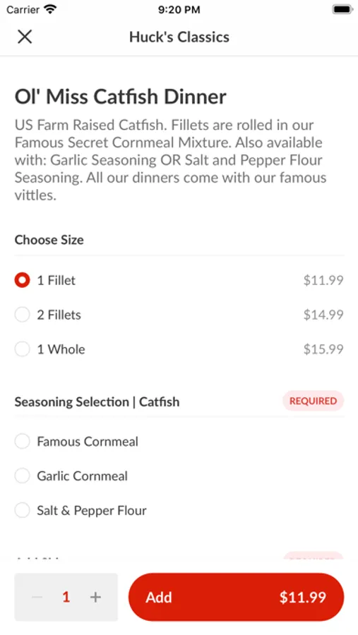 With the Huck Finn's Catfish mobile app, ordering food has never been easier. Whether you're looking for a quick snack or a full meal, we've got you covered. Just browse our easy-to-use menu, customize it how you'd like, place your order using our secure payment system, and sit back! A push notification will alert you when your order will be ready.