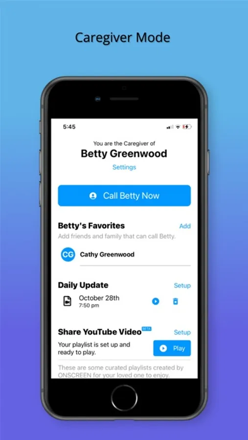 - Set up and configure settings for your loved one's ONSCREEN Spark