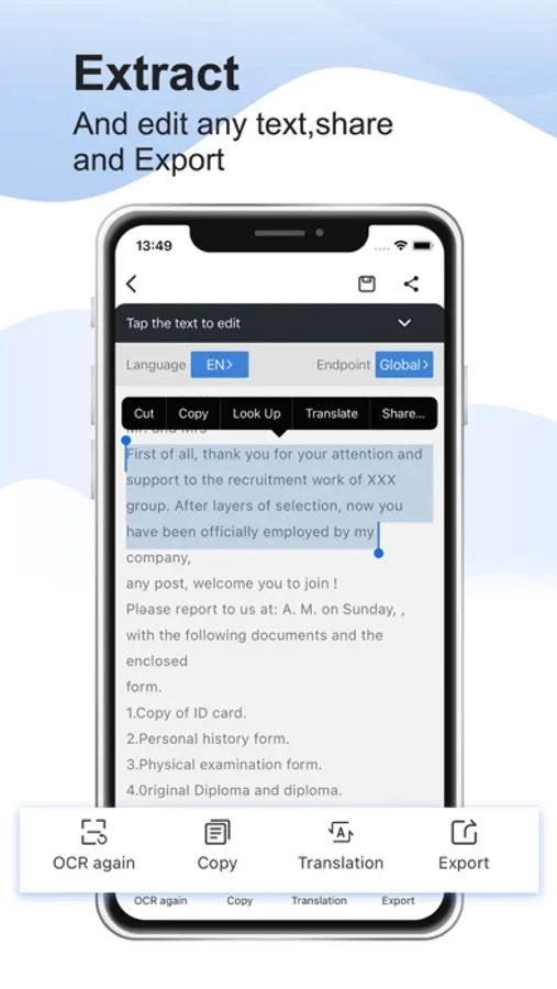 - Mobile phone document, automatically remove the clutter background, generate high-definition JPEG pictures or PDF files.