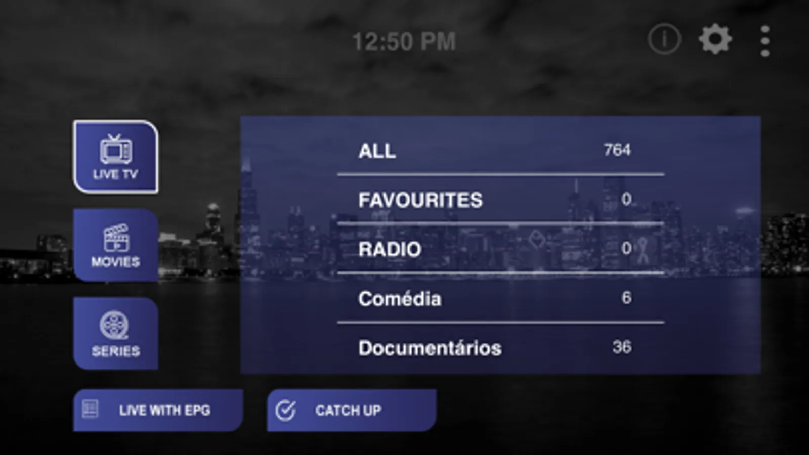 LIVE TV, MOVIES, SERIES, EPG and CATCH UP