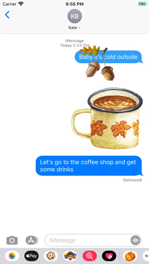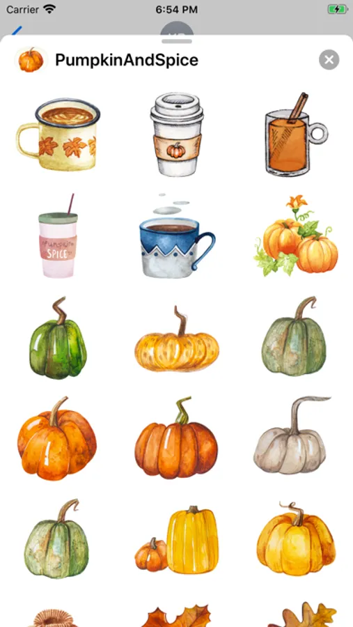 Fall is in the air! No better way to celebrate the crisp air, beautiful colors, and spices than this wonderful sticker pack. Pumpkins, pumpkin drinks, leaves, and more.