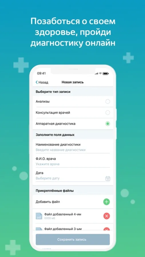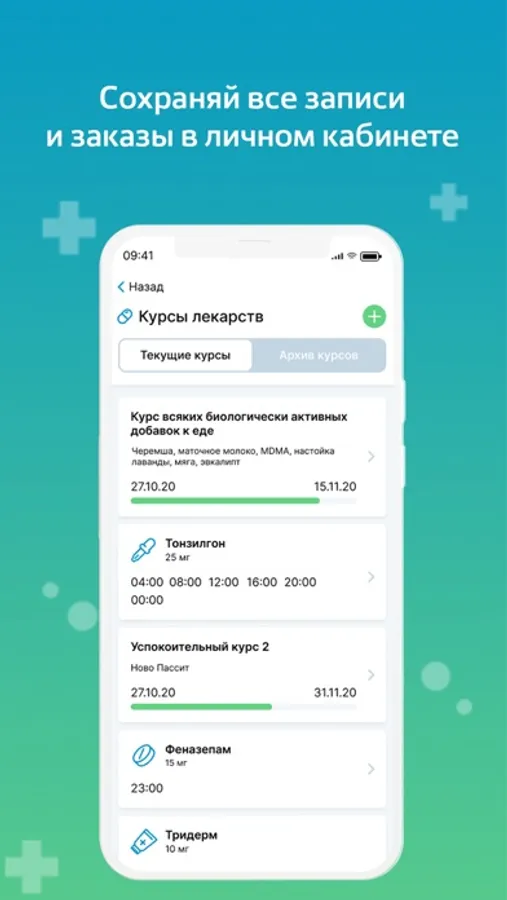 Хранение медицинской истории в телефоне: анализы, УЗИ, КТ, МРТ, консультации врачей;