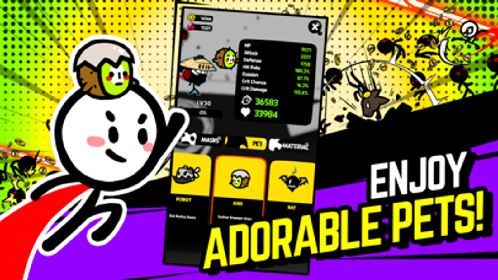 - Collect unique masks to enhance the power and looks of the Stickman!