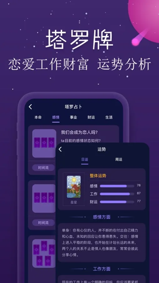 星座塔罗是一款集合了塔罗牌、星座的运势解读app。