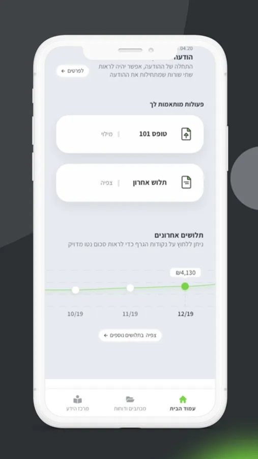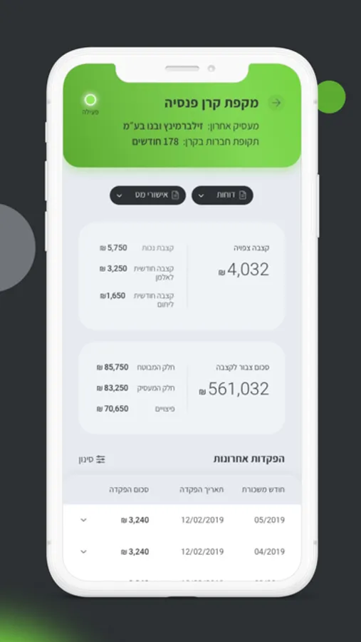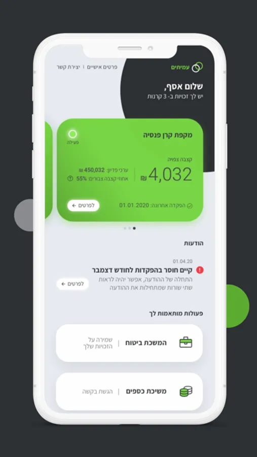 אפליקציית עמיתים מאפשרת לך מעקב אחרי המידע שלך בקרן:
