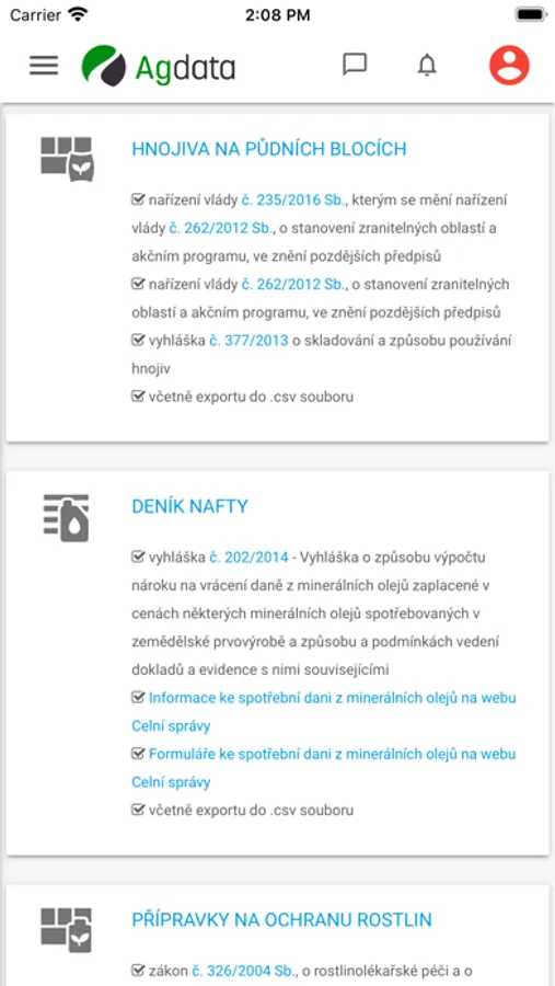 Agdata vám navíc nabízí detailní analýzu dusíku a dalších živin a umožní tak efektivně plánovat aplikace hnojiv. Zákonné evidence budete mít k dispozici na jeden klik a vždy aktuální, žádná kontrola vás již nezaskočí.