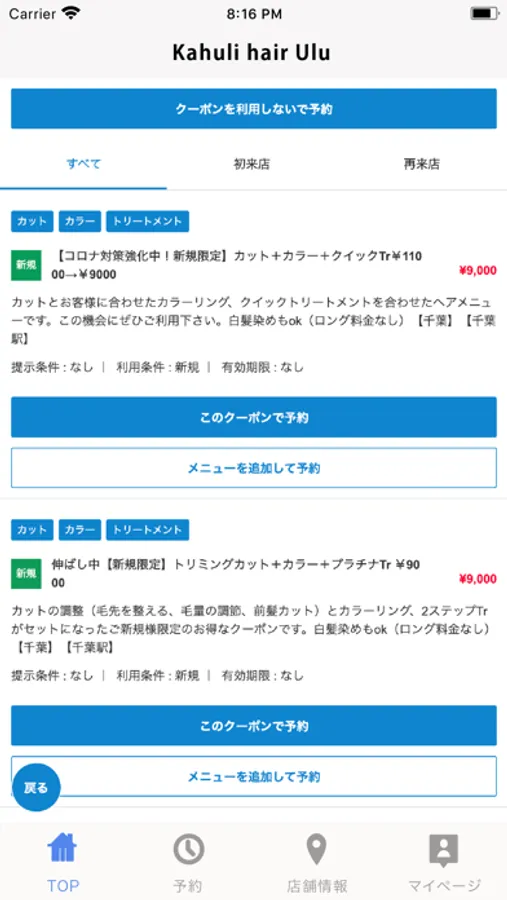 お得なクーポンが配信されます。ネット予約時にクーポン利用での予約も可能なので来店時もスムーズに施術頂けます。