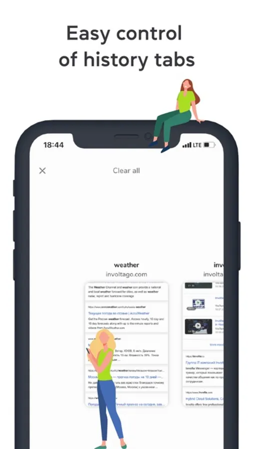 • History control. Involta Go brings search queries to a separate tab. The most frequently visited websites will remain at your fingertips, in the browser, and on the mobile device.