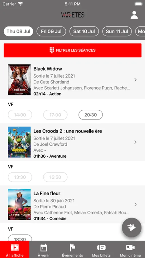 Les horaires des séances