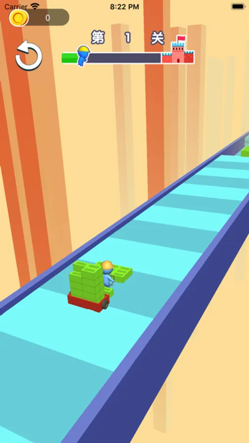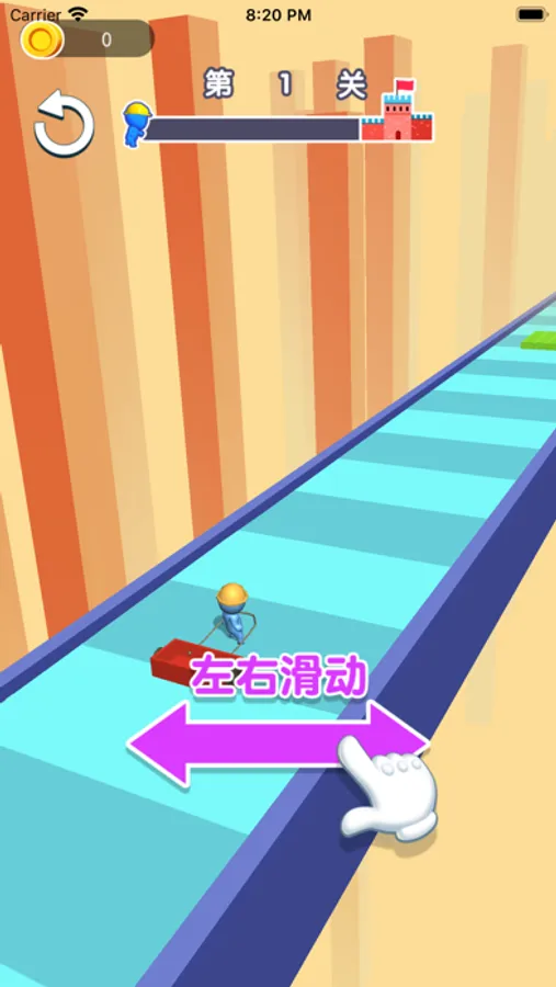 左右滑动屏幕控制小人移动,搬起砖头铺路,以到达终点建设城堡。