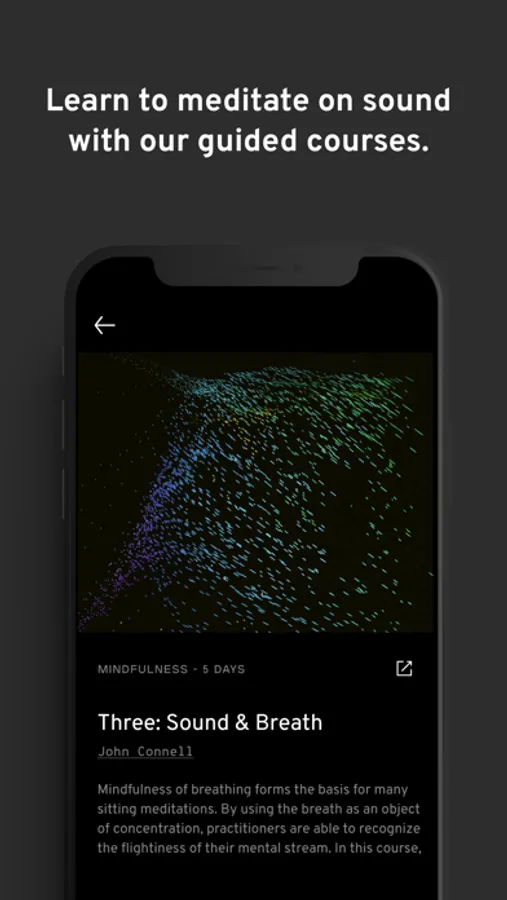 The Soundworks app includes a new daily sound every day as well as courses, extended sessions and conversations. Courses touch upon scientific, artistic or philosophical themes with a contemplative spirit. In conversations, we involve artists, scientists or thinkers to discuss meditation, science, music and health.