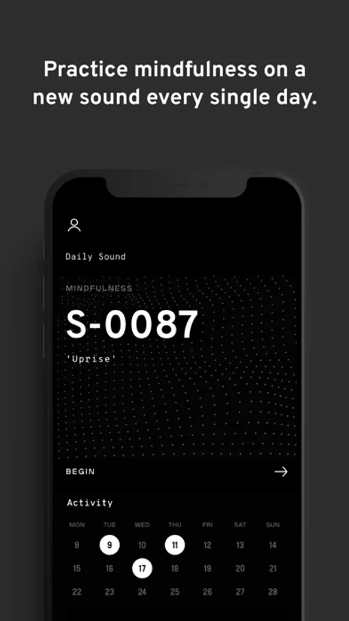 - Daily Sounds: a new sound meditation every day, with the ability to add time at the end of the sound to continue meditating in silence.