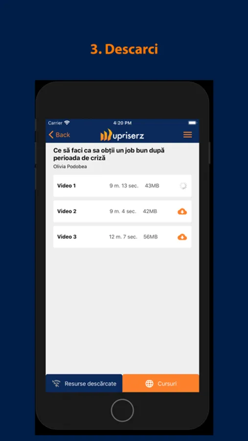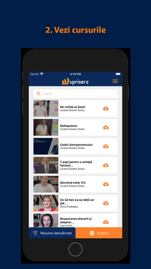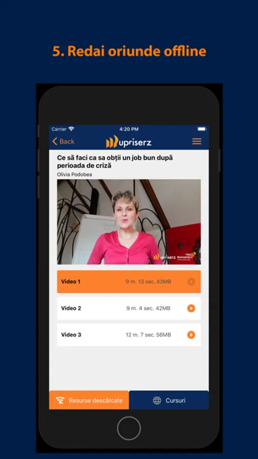 Vizionează offline cursurile tale preferate din Upriserz. Aplicație disponibilă doar pentru clienții cu abonament Premium.