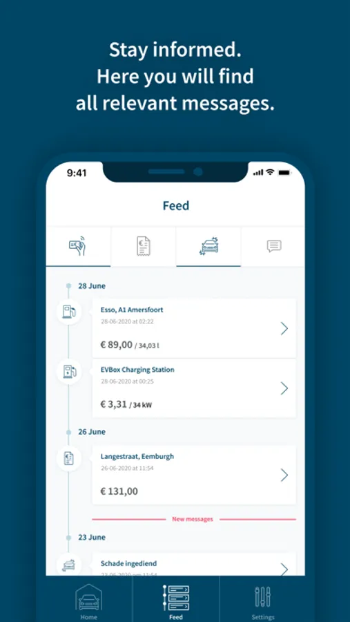 Here you will find all current and important information about your lease car. This way you always have necessary information at hand, such as our contact details, your lease contract, fuel transactions and fines.
