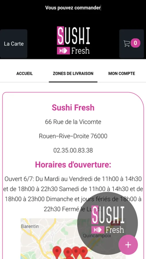 L'application Sushi Fresh Rouen vous permet de commander en ligne ou par téléphone via votre application. Vous pouvez consulter notre carte et choisir vos produits.