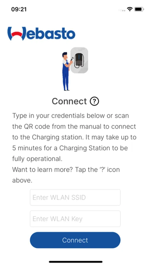The app allows you to connect your mobile device to the charging station's wifi hotspot. You just need to scan the QR-code from the manual or enter the Wifi hotspot credentials to connect.