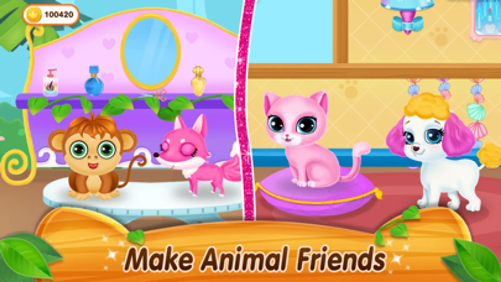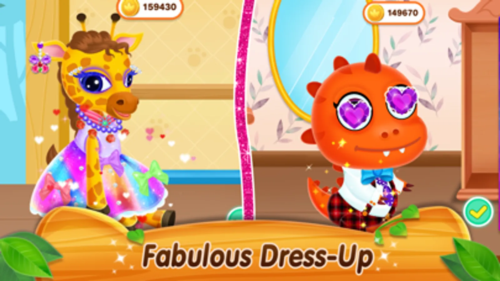 There are many cute little animals living in the jungle such as charming panda, lively fox and majestic little Tyrannosaurus... you are the exclusive beauty stylist for these animals. By using various hairdressing tools, colorful cosmetics, fancy dresses and cartoon stickers, you can give play to your superb technology to create the craziest hairstyles, the most beautiful makeup and the most fashionable clothing for the animals! Show your modeling skills freely and get ready for the new animal transformation & beauty adventure!