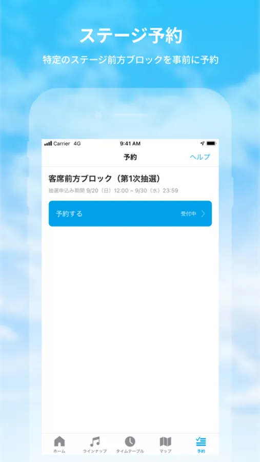 東の広場 PARK STAGEともみじ川広場 RIGHT STAGEの前方ブロックは密集を避けるために、入場予約制(事前抽選)となります。抽選の申込み及び結果確認がアプリから可能です。