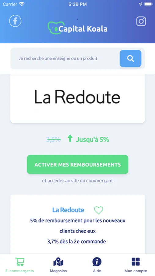 Effectuez ensuite vos achats comme d'habitude : votre remboursement remontera dans votre compte Koala le jour même, ou sous 1 semaine maximum.