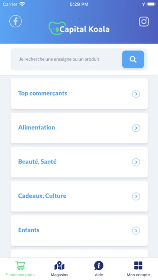 Recherchez directement les commerçants dans l'app, sans passer par votre navigateur, et accédez à leur site mobile.