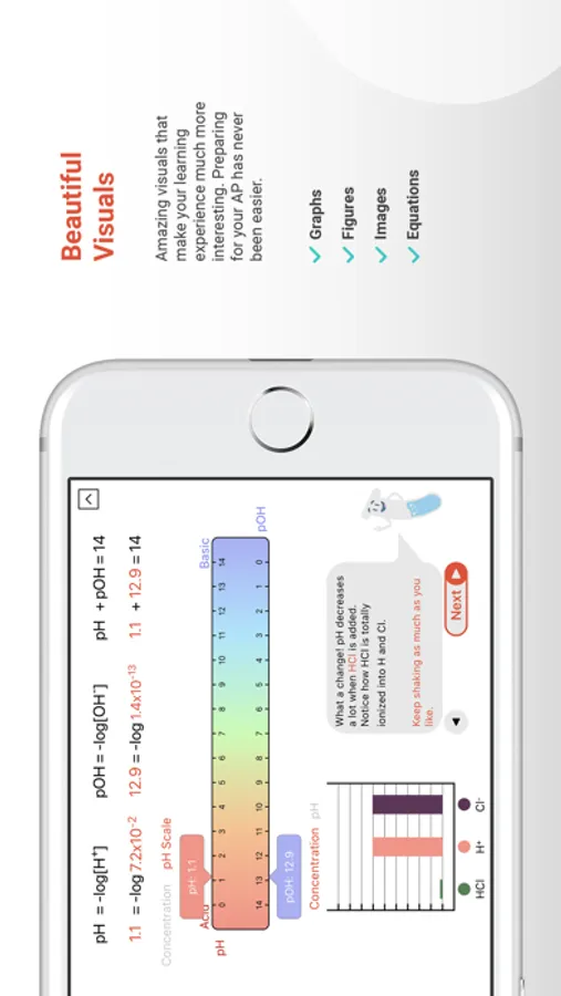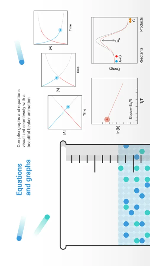 Difficult graphs and equations are visualized seamlessly with a beautiful beaker animation.