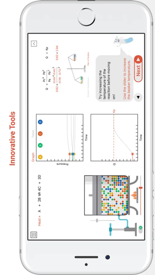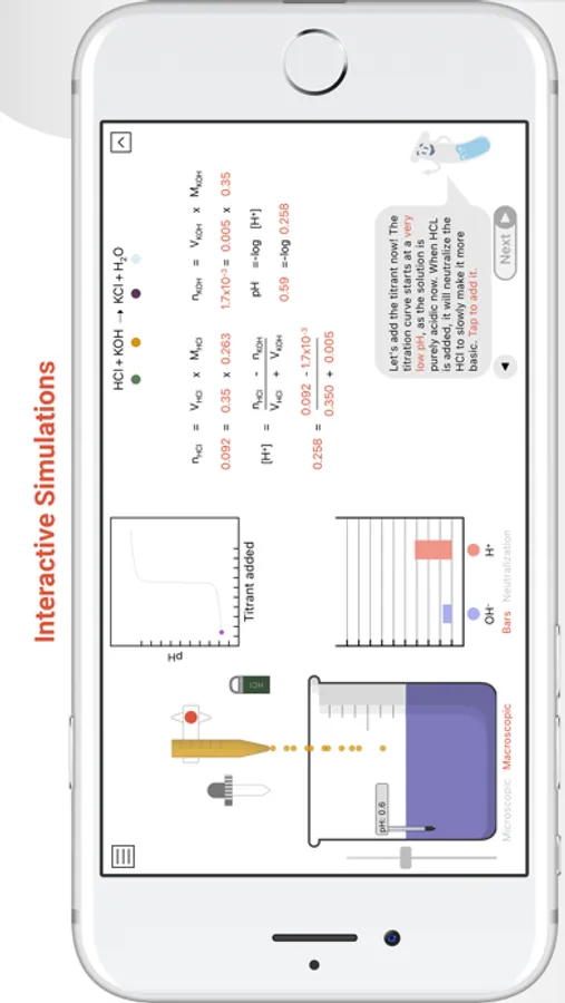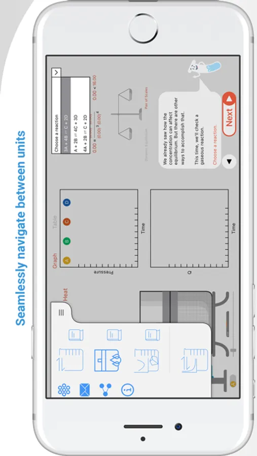 Beaky the beaker will guide you through the simulation and explain key concepts and equations as you go along. Seamlessly navigate between units and different activities, all within the same app.