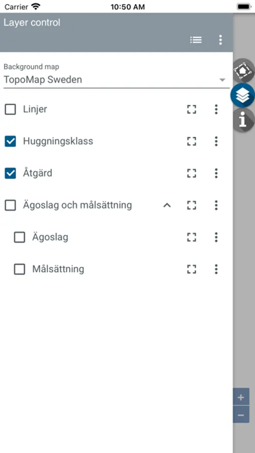 I Skogsklok – Min Skog, får du en digital karta som ger dig en bra översikt över dina fastigheter och du kan enkelt navigera i din skog med hjälp av gps-funktionen. Har du även en skogsbruksplan kan du själv välja olika temakartor som beskriver de olika skogsområdena och se information från dem genom ett klick i kartan.