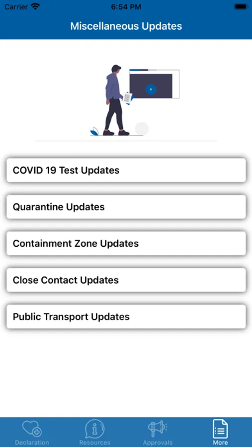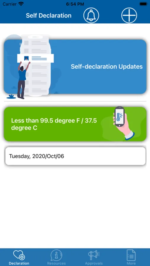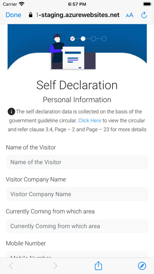 This app is only designed for employees and visitors/vendors to share information about 1) Their Self-health assessment, 2) their quarantine status, 3) If they have undergone medical tests, 4) If they live in a containment zone and 5) If they travel through public transport.