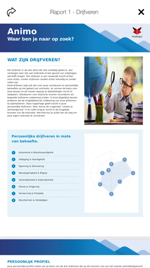 Mensen die hun werk doen omdat ze gemotiveerd zijn, zijn bevlogen medewerkers. Zij hebben meer plezier in het werk, zijn creatiever, minder ziek en kunnen het werk beter en langer volhouden. Animo is in te zetten voor verandertrajecten, jobfit, verhogen van motivatie en reduceren van uitval. Een organisatie met bevlogen medewerkers levert betere prestaties, heeft minder incidenten en een hogere klanttevredenheid. Ondanks het belang van motivatie weten werkgevers vaak weinig over de motivatie van werknemers. Madlogic heeft hiervoor een motivatiemanagement tool ontwikkeld, een tool die persoonlijk motivatie meet en deze helpt te verbeteren.
