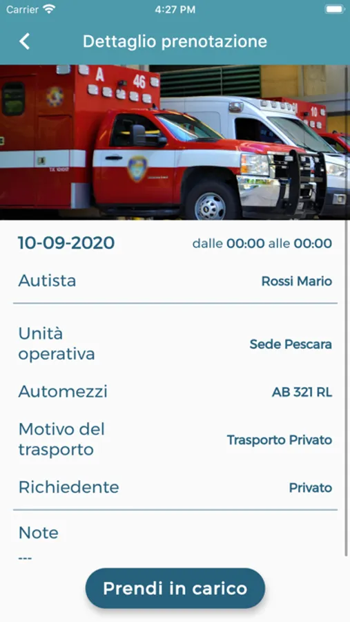 L’operazione di presa in carico conferma la prenotazione e la sposta tra i servizi che deve svolgere nel corso della giornata.