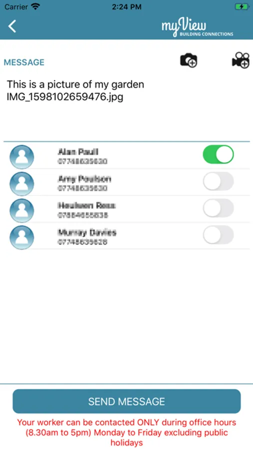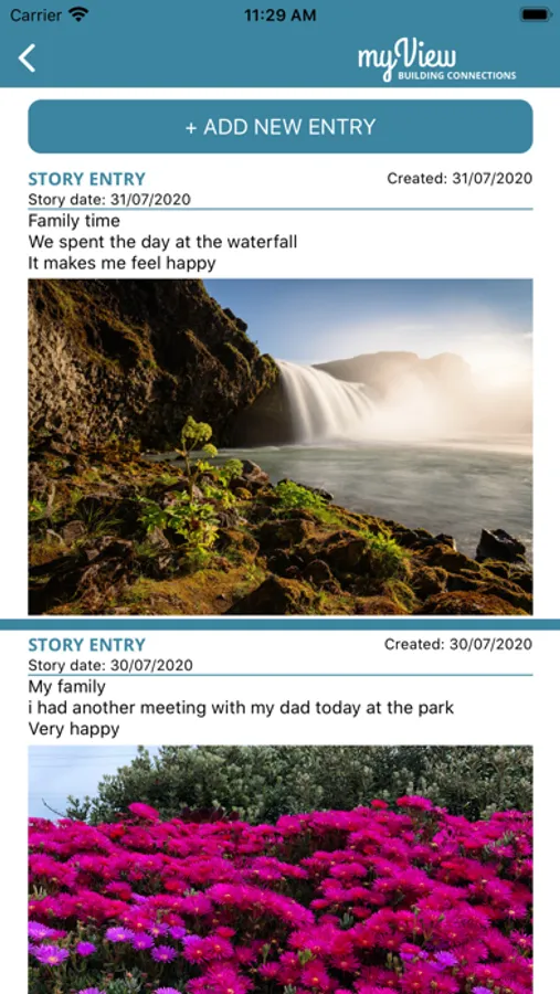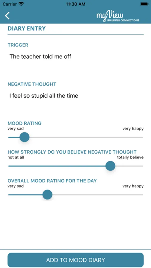 The myView app allows logged in users to add to their story and mood diary for use in their review process. they can also contact their worker by email or SMS, get the latest new from the Hub and take part in surveys and give their views according to their permissions