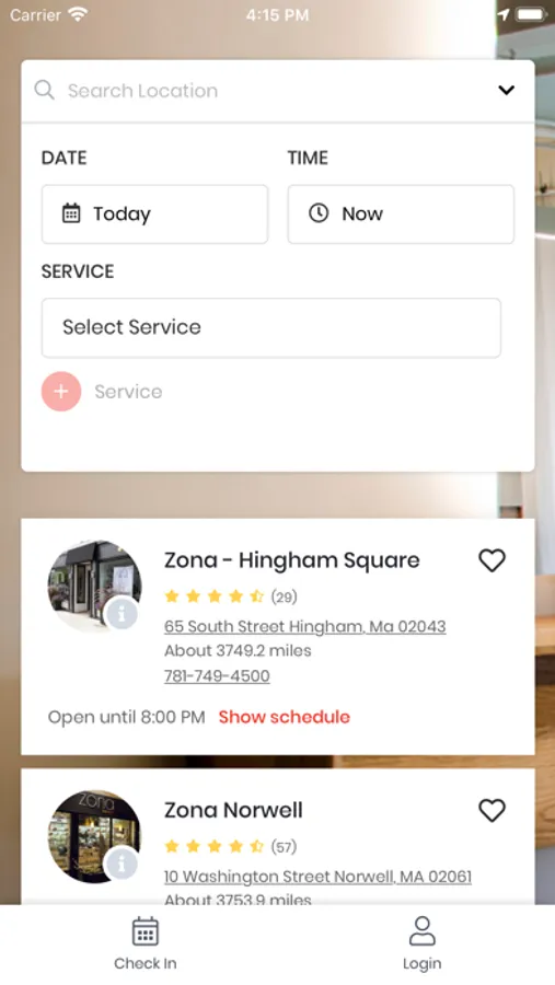 Download the Zona Professional Salon App to conveniently book your appointment for yourself, a guest or up to 4 clients.View your service and retail history and visits and be able to reschedule appointments when conflicts arise. Be sure to mark your favorite location and stylist for easy rebooking opportunities.Review your visit and stylist and let us know how we did!