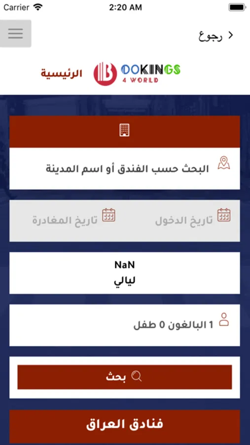. The application includes a main list through which it facilitates the search for a hotel in Iraq in Baghdad, Erbil, Sulaymaniyah, Karbala, Najaf, Basra and other provinces in Iraq.