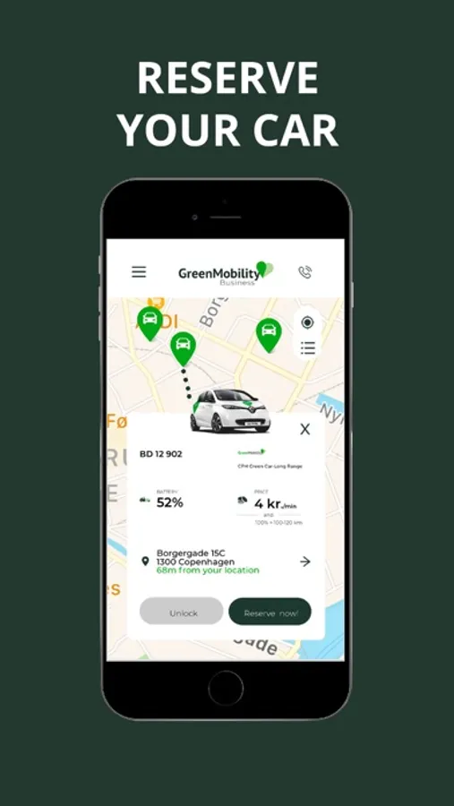 GreenMobility Business app is for companies looking for a smarter form of transport. The app makes it easier for companies and employees to drive green and sustainable during working hours.